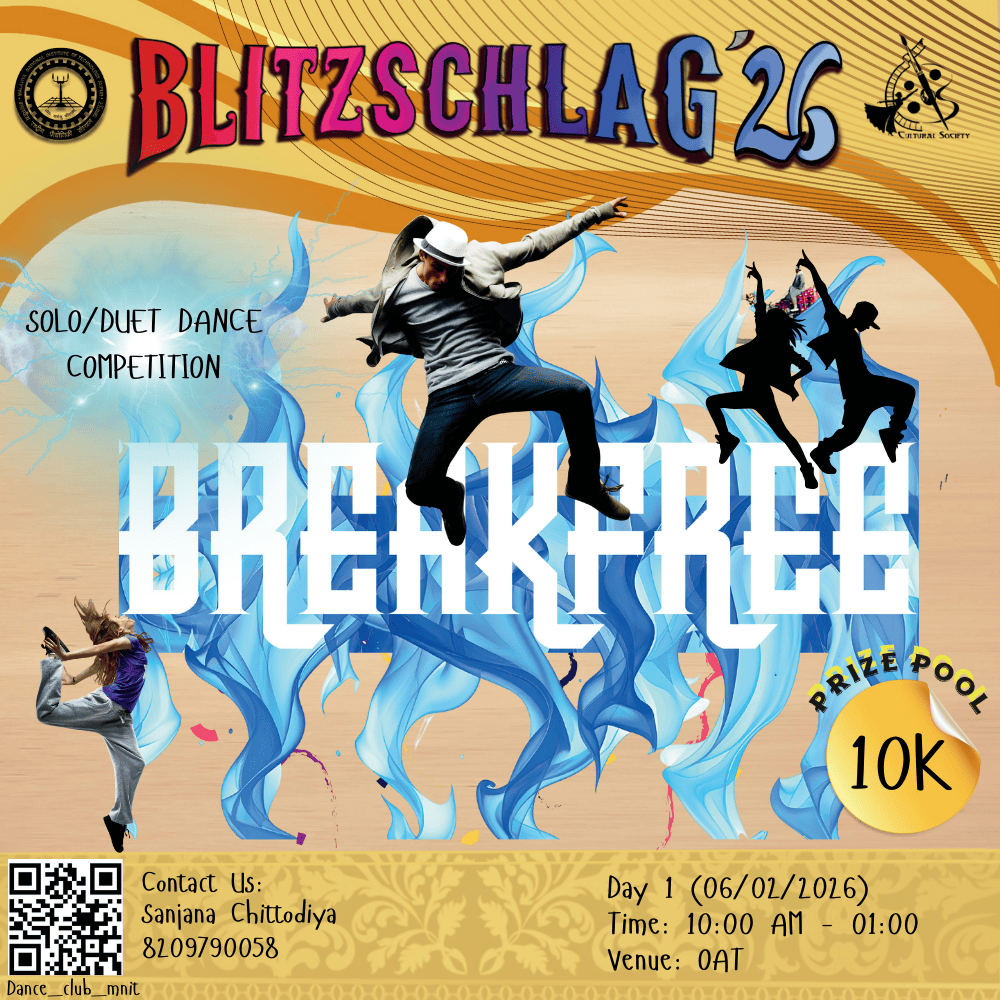 Fasten your seatbelts to witness a spectacle of talent and passion as BLITZSCHLAG is all geared up to entice souls with its dance competition RAMBA SAMBA. A captivating journey through diverse dance styles, groups harmonize in perfect unison, filling the air with rich melodies and sending shivers down spines. Breathtaking choreographies, electrifying energy and heart throbbing performances are all set to make you experience the raw emotions through movement!