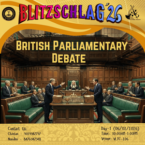MNIT’s Live is an exciting and interactive debate event designed to test participants’ spontaneity, creativity, and communication skills in a fun and friendly environment. Participants compete in teams on light-hearted and engaging topics that are revealed on the spot. Each debate features two teams of three members (3 vs 3), promoting teamwork, quick thinking, and effective expression within a fixed time limit. Speakers are expected to present sharp arguments and respectful rebuttals while ensuring equal participation among all team members. The event strongly emphasizes fair play, mutual respect, and clean communication, making it an enjoyable and enriching experience for both participants and the audience. Teams are evaluated based on content quality, creativity, clarity of expression, teamwork, and overall impact.