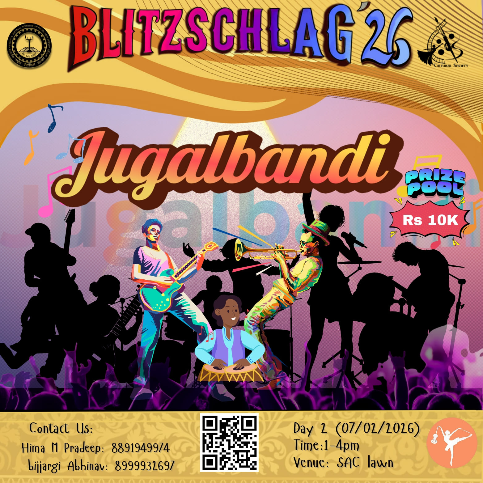 Jugalbandi is an acoustic ensemble event that celebrates musical conversation, harmony, and creativity. Participants perform in small groups using acoustic instruments, drawing inspiration from Indian classical music, folk traditions, or acoustic interpretations of any genre. The event encourages emotional expression, musical storytelling, original thought, and respect for acoustic purity. Self-composed music and creative reinterpretations are highly appreciated.