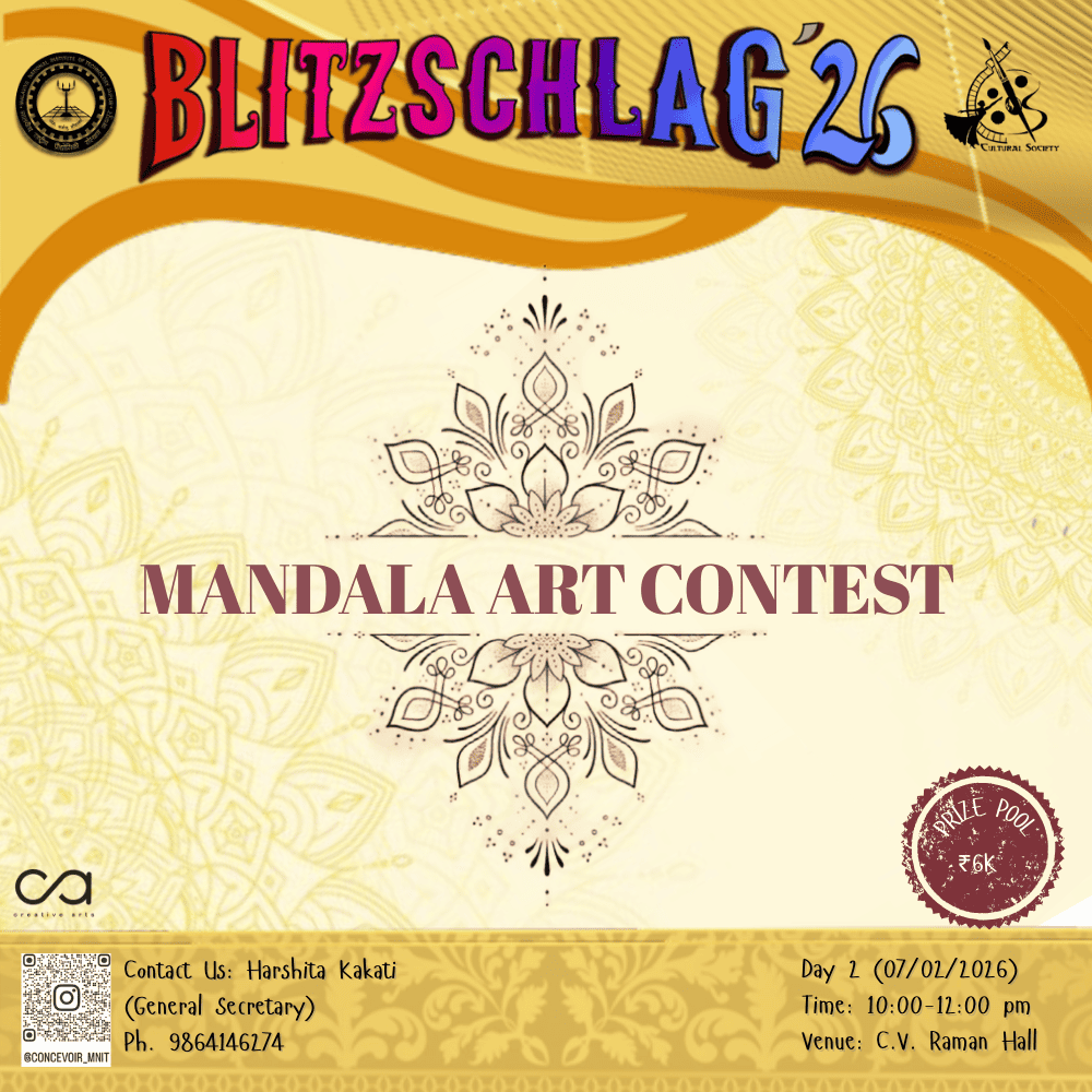 The Mandala Art Competition invites participants to create intricate and expressive mandala artworks using paints and markers. Focusing on symmetry, balance, and detailed patterns, the competition encourages artists to explore creativity through color, form, and repetition. Participants may use a variety of painting techniques and marker styles to develop visually engaging compositions that reflect harmony and precision. The artworks will be judged based on originality, detailing, color application, symmetry, and overall visual impact.